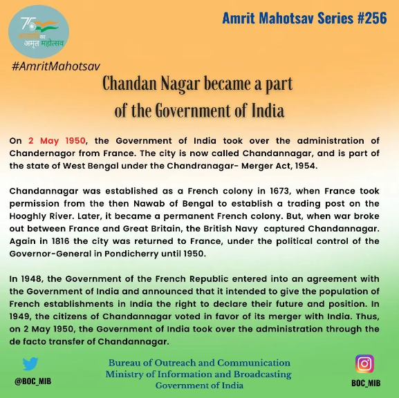 चंदन नगर भारत सरकार का हिस्सा बन गया