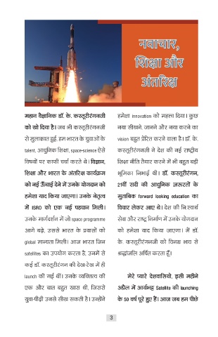महान वैज्ााड़नक रॉ. के. कसतूरीरंगनजी हमेशा innovation को महत्व ड़दया। कु्