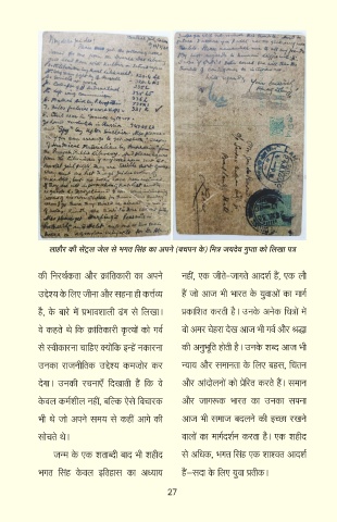 लाहौर की िट्ल जेल िे भगत सिंह का अ्ने (बि्न के) समरि जयदे्व गुपता को सलखा ्रि