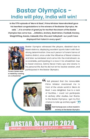 his heartiest congratulations to the winners of the Bastar Olympics. He