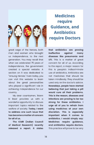 section on it was dedicated to use of antibiotics. Antibiotics are