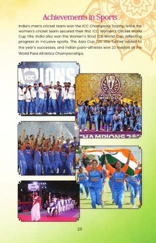 Cup title. India also won the Women’s Blind T20 World Cup, reflecting