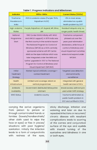 Table 1 : Progress Indicators and Milestones
