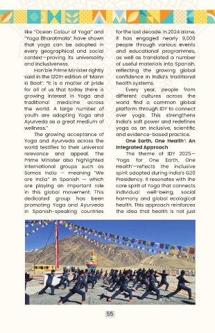 The Interna onal Day of Yoga Handbook, 2025, be reflec ve and move inwards. Over the years, this well-being." universal appeal."