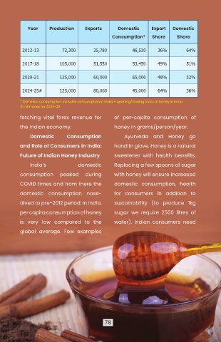 * Domestic consumption includes consumption in India + opening/closing stock of honey in India