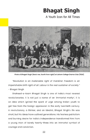 Photo of Bhagat Singh (back row, fourth from right) at Lahore College Drama Club (1924).