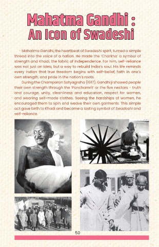 strength and Khadi, the fabric of Independence. For him, self-reliance
