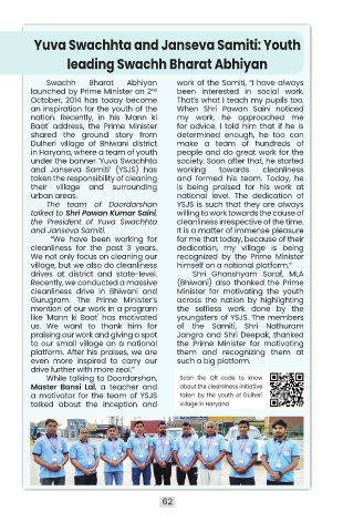 and Janseva Samiti’ (YSJS) has working towards cleanliness